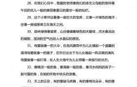 1、1夏日中午的太阳像个大火球2老师像妈妈一样关心我们3小姑娘的脸红得像个苹果4太阳像一个金色的圆球...